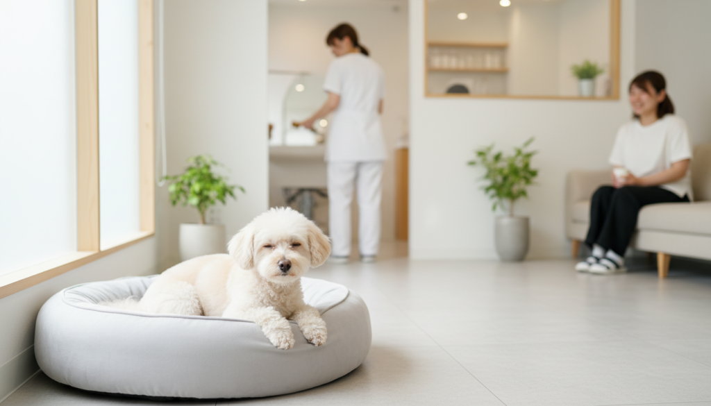 | 動物病院併設 | 獣医師が常駐しているため、皮膚トラブルの相談や、シニア犬・持病がある子も安全に施術を受けられます。 |